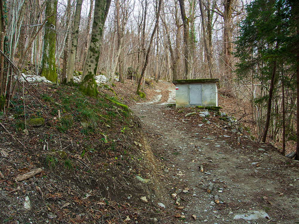 parcheggio: esiste una minima possibilità di parcheggio nella zona []. Altrimenti il parcheggio della stazione ferroviaria delle FN, dove esiste una buona possibilità di parcheggio []. In questo secondo caso è necessario attraversare il paese fino a raggiungere il Ponte Oscuro.