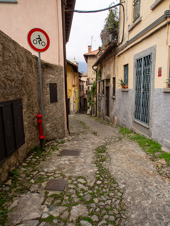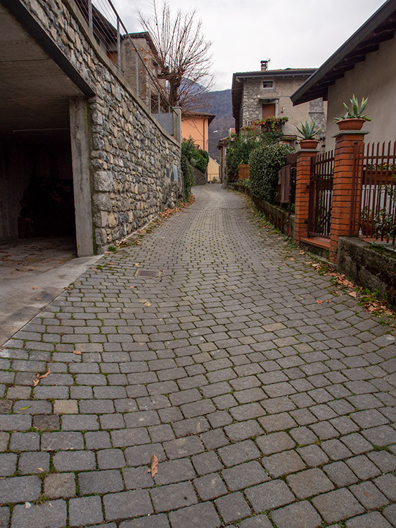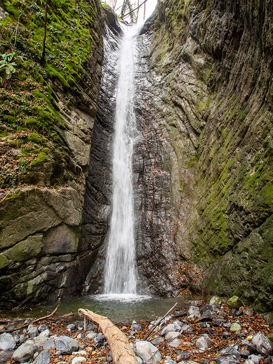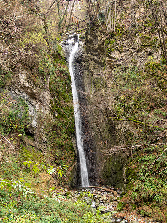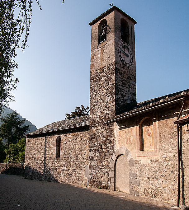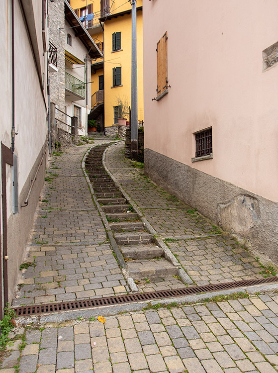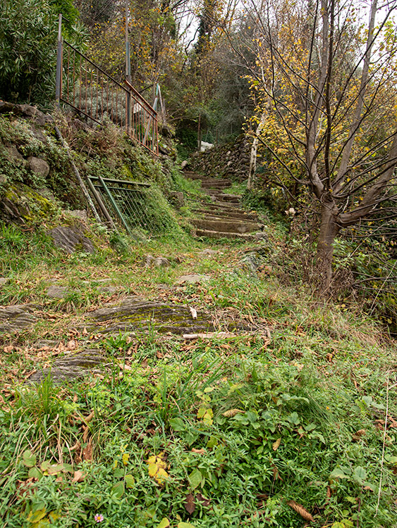 itinerario: dalla piattaforma a lago si sale sino alla via Borgovecchio, si gira a dx e si procede in salita [] sino a raggiungere la piazza della chiesa [], si ignora la strada che sale alla SP583 e a lato chiesa si imbocca una stradinaa [] che rimanendo sotto la provinciale alla sua fine si congiunge con essa []. Attraversata la provinciale si imbocca un sentiero gradinato in forte salita [], si supera una cappella votiva, e ci si congiunge con la Strada Regia []. Si procede lungo di essa a dx (verso sud) sempre in salita [], ma poi il sentiero spiana []; a circa metā č presente a lato valle un grosso masso erratico [], e in breve si raggiungono le prime case di Vico []. Si attraversa la frazione lungo via Santa Maria e si raggiunge la piazzetta Verigā, ove č presente un bar che puō fungere da punto di ristoro []. Proseguendo si arriva alla chiesa di Santa Maria in Vico, un gioiello alto medioevale con all'interno importanti affreschi del pittore tornasco De Benzi, risalenti agli inizi del '500, come pure il polittico sulla parete di fondo del presbiterio []; l'interno č visitabile facendo richiesta al parroco. Si raggiunge e si attraversa la SP44 [], e si procede lungo via Scerio attraversando l'omonima frazione, poi lungo via Tofe si attraversa la frazione di Onzanigo [], fino ad arrivare a un lavatoio e al ponte sul torrente Tuf [], che permette di attraversarlo. Oltre il ponte c'č una piazzetta e alla sua sx inizia una stradina, gradinata al centro, in ripida salita []; usciti dall'abitato di Nesso la pendenza diminuisce e il fondo divente in cemento con tratti in terra battuta []; si arriva a un tornante a sx [], e dopo un breve rettilineo a un tornante a dx []. Una ventina di metri dopo il tornante a dx parte un sentiero [], che in piano [] porta alla forra della cascata []. Per una miglior visione si consiglia di attraversare sui massi (con attenzione) il ruscello che scorre ai piedi della cascata e di portarsi sulla sinistra orografica della forra [][].