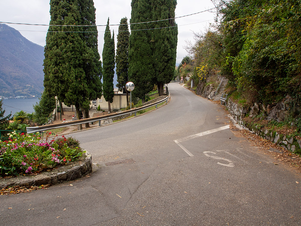 Il ritorno avviene inizialmente sul percorso di andata, poi a metā via Scerio si percorre una stradina scalinata a sx [], che porta a incrociare la SP44 []. Si continua in discesa (questo č il tracciato della Strada Regia in Nesso), sino a riattraversare la SP44 []. Poi ancora in discesa su scalinata [] sino a incrociare la via Della Castagna, e la si percorre verso dx in discesa []. Arrivati al comune di Nesso si continua a scendere lungo via Pietro Binda [], superato il cimitero si raggiunge nuovamente la SP44 [], la si attraversa e con un breve tragitto [] si raggiunge la SP583 che si attraversa [] si imbocca via Borgovecchio e si scende lungo di essa [], sino a raggiungere la Piazza della chiesa arcipretale e chiudere il giro ad anello [] chiudere il giro ad anello.