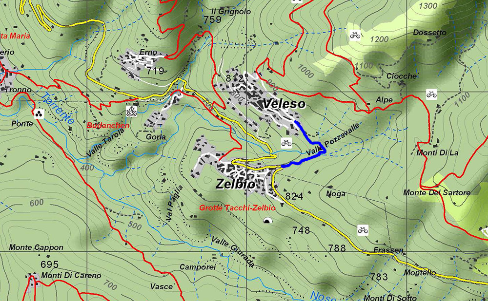 partenza: Il percorso inizia a Zelbio SP44, una cinquantina di metri dopo il secondo tornante (salendo da Nesso) [].